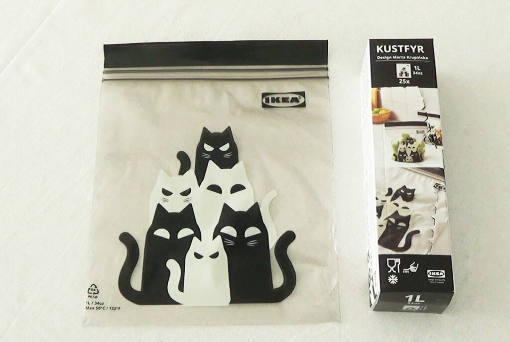 KUSTFYR クストフィールフリーザーバッグ, ネコ模様 グレー, 1 l ¥299/25 ピース