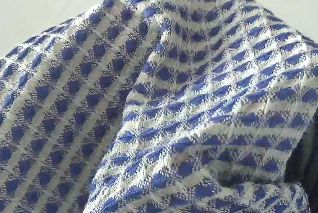 ↓右2枚のブルー/ホワイトは、ポコポコしている生地で、織り込まれたような模様もかわいいです。